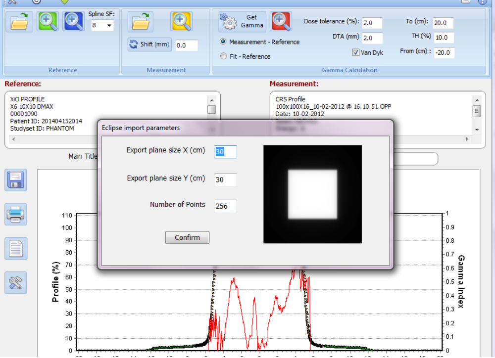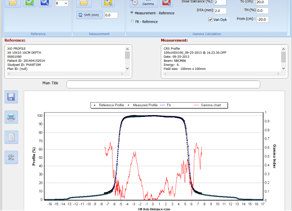 ScanDoseMatch is a free scientific software that performs 1D gamma calculation on a pair of corresponding datasets. The main area of application is radiation therapy during validation of measured or commissioned beam data